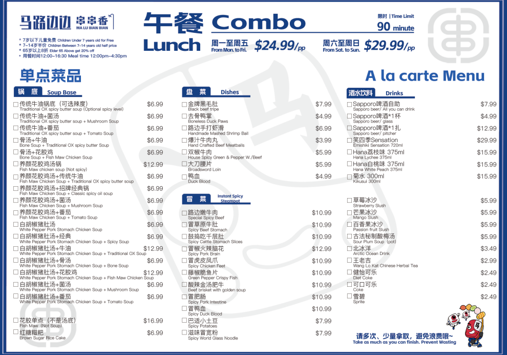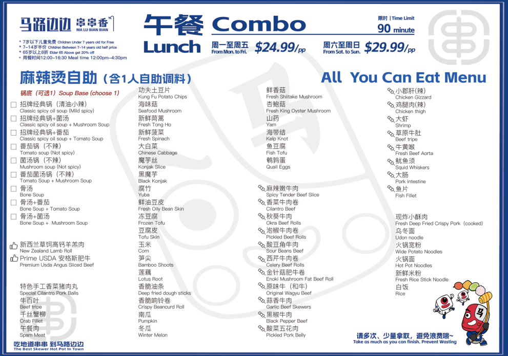 MLBB AYCE Hot Pot 马路边边直营店 Menu